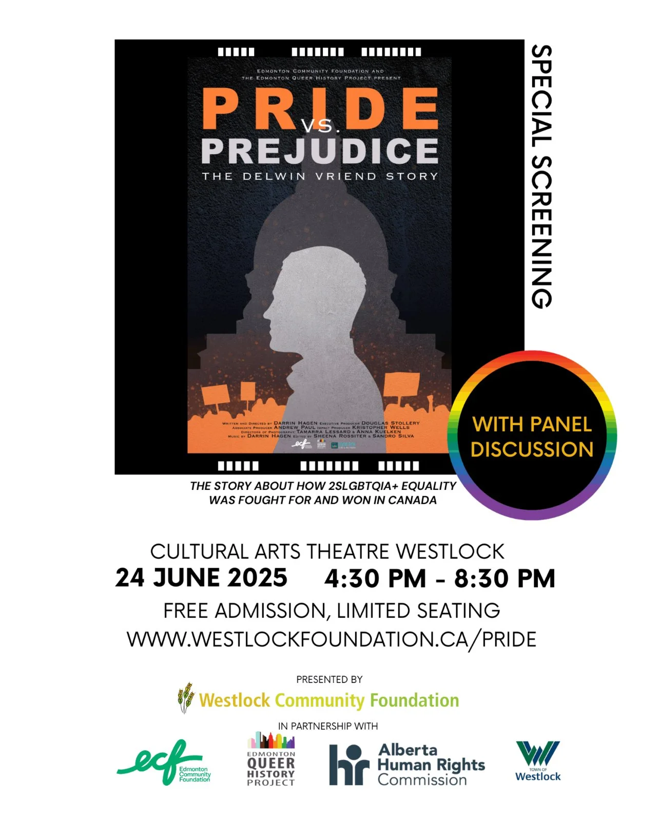 Join us this Pride Month for a special screening of Pride vs. Prejudice: The Delwin Vriend Story — the award-winning documentary directed by DarrinHagen that tells the true story of one man’s fight for equality and the landmark SupremeCourt decision that changed Canada forever. This screening celebrates the resilience and contributions of our local 2SLGBTQI+ community and shows how one person’s courage can drive national change.