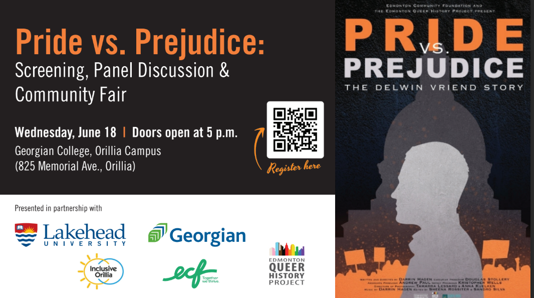 Join us on Thursday, June 12 at the KMSC Performing Arts Theatre for a special screening of “Pride vs. Prejudice” followed by a panel discussion featuring film Director and Writer Darrin Hagen. These event is made possible with support from the Northwestern Alberta Community Foundation, Grande Prairie Pride Society and the Edmonton Community Foundation!